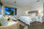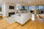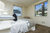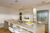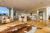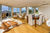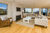 The accommodation offers four or five bedrooms, a second lounge/media room and two and a half bathrooms. A bright, clean and crisp white palette is complemented with light, honey-hued floors in the open-plan living, dining and kitchen area. The room is further illuminated via the multiple sets of doors and picture windows that frame the expansive views, where the green of the valley and Kennedy Park are juxtaposed against the deep blue of the Hauraki Gulf. Entertaining is a pleasure as guests can spill out onto the tiled deck during summer or gather around the large gas fireplace in winter.