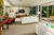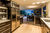An office in the centre has a private balcony with a glass balustrade and is flanked by two generous bedrooms, each with ensuites and balconies. (An option for a third bedroom or media room would be to convert the third garage). An excellent degree of privacy has been achieved with the use of louvers and towering trees that screen out neighbours perfectly. The wide staircase arrives down at the open plan living, dining and kitchen, which has a high stud to further enhance the feeling of space. Enormous glass stackers open the room right up out to the paved terrace, making for sensational entertaining. The chef's kitchen has feature smoked glass pantry doors, pale timber floors, black cabinetry and Gaggenau appliances, while the lounge has a gas fireplace and a powder room and storage space behind it.
