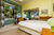 Living is on the ground floor with two separate areas ideal for separation between children and parents. The first flows to the front of the home with french doors opening out to a deck and great sized lawn. The kitchen is set amongst a superb family entertaining area with a high tongue and groove ceiling and functional island bench with Corian tops. An open plan dining area and combined lounge takes in views over the tropical garden through large sliding doors.